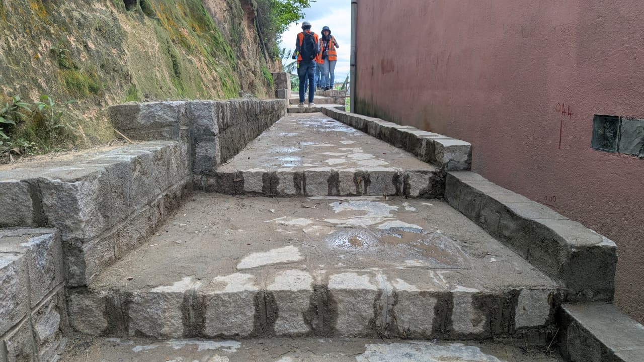 Pour répondre à ces défis, le Projet Lalankely III a été déployé avec pour objectif principal de désenclaver le fokontany et d’améliorer les conditions de circulation piétonne. Dans ce cadre, une ruelle de 135 mètres de long a été aménagée, comprenant un escalier en pierres taillées ainsi qu’un passage adapté à la configuration du terrain. Cette infrastructure a été conçue pour s’intégrer harmonieusement à la topographie du site tout en garantissant sécurité et praticabilité.
