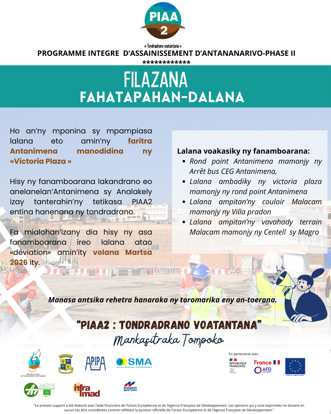 Habitants d’Antananarivo, Le programme PIAA2 débutera prochainement. Il vise à réduire les risques d’inondation...
